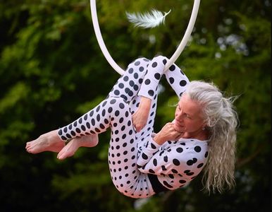 Aerial hoop is for everybody. You don't have to be young, female, slim, tall, or beautiful. You don't even have to be strong. Your strength and flexibility soon grow, and you start to amaze yourself at what you can do.