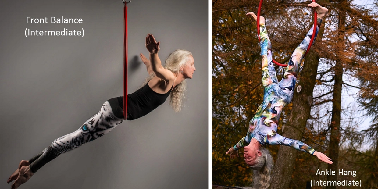 Aerial hoop is an unusual combination of isotonic and isometric exercises. Isotonic exercises involve movement, while in isometric exercises the body remains still while the muscles work to maintain tension. Getting into and out of hoop moves, and transitioning between them, is isotonic work, while pausing to hold most hoop moves for a few seconds is isometric work. Both these kinds of exercise are very beneficial. I am struggling to think of another activity that emphasises both these types of exercises as much as hoop does.